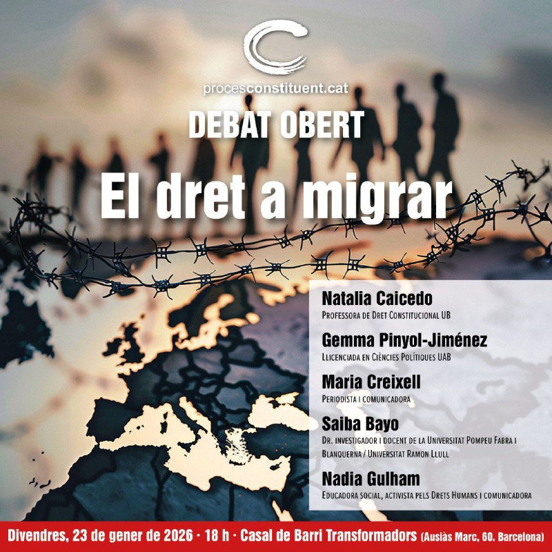 Procés Constituent organitza un debat obert per abordar, sense simplificacions ni consignes fàcils, un dels grans debats socials i polítics del nostre temps: el dret a migrar.