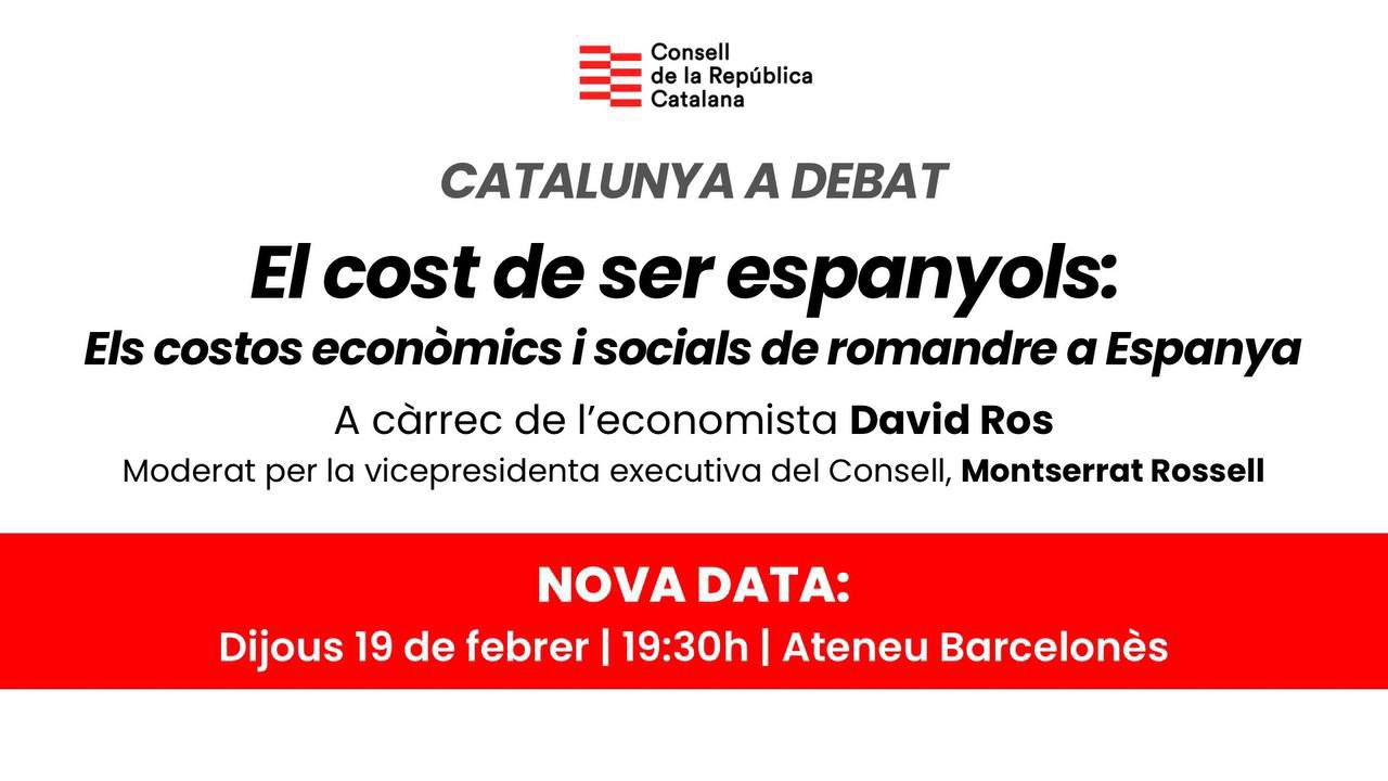 Sota el títol ‘El cost de ser espanyols: els costos econòmics i socials de romandre a Espanya’, l’economista David Ros analitzarà l’impacte estructural que té la dependència política en l’economia i el benestar del país.
