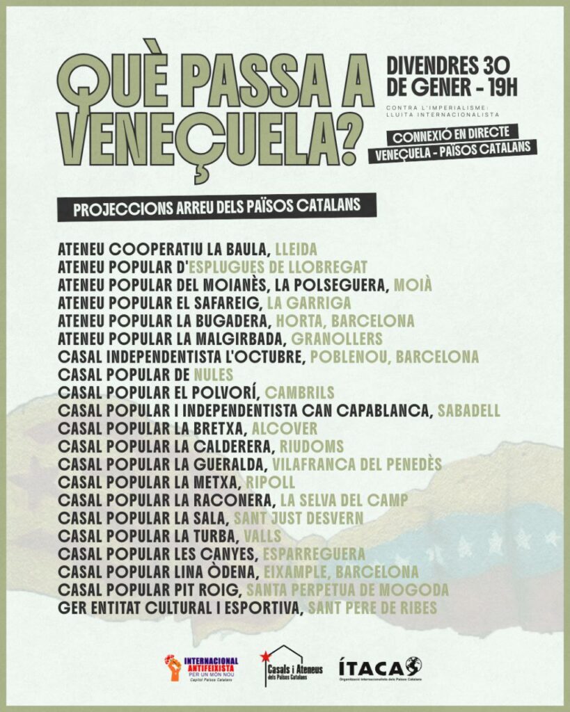 Un acte per analitzar i debatre la situació actual a Veneçuela, obert a la participació i amb vocació de trobada col·lectiva als espais populars del país.