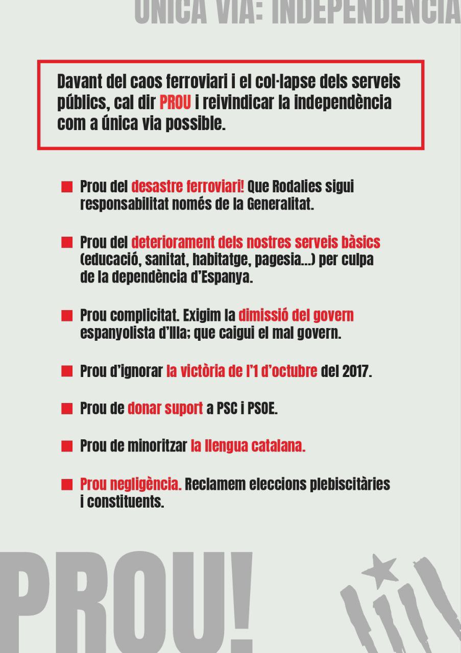 La convocatòria defensa que l’única via per garantir uns serveis públics de qualitat i una xarxa de Rodalies funcional és la independència.